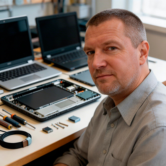 За каждым успешным ремонтом стоит конкретный человек — с реальным опытом, прокачанными навыками и страстью к технике. Наша команда — это инженеры, которые знают ноутбуки, принтеры и мониторы изнутри: от микросхем до прошивок. Мы не гадаем, а точно диагностируем проблему и устраняем её. Сотни восстановленных устройств, сложные случаи, от которых другие отказались, — всё это наша повседневная работа, и мы уверены в каждом ремонте, который выполняем.